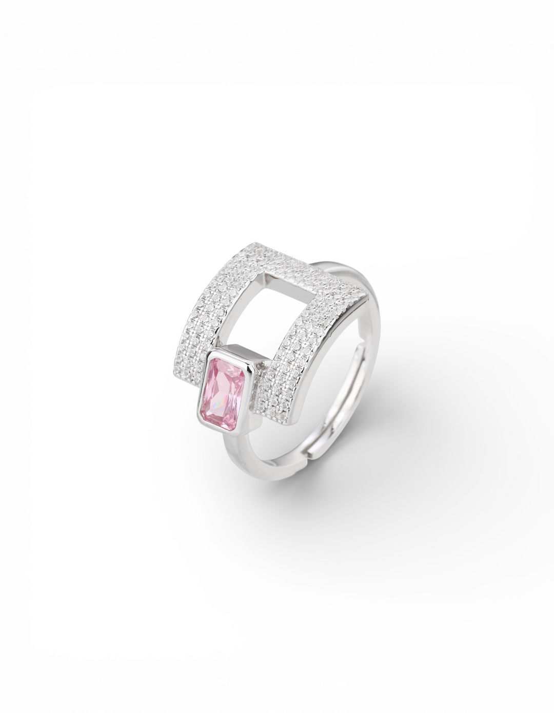 ANELLO DOPPIA FASCIA PAVÈ CON PIETRA ROSA