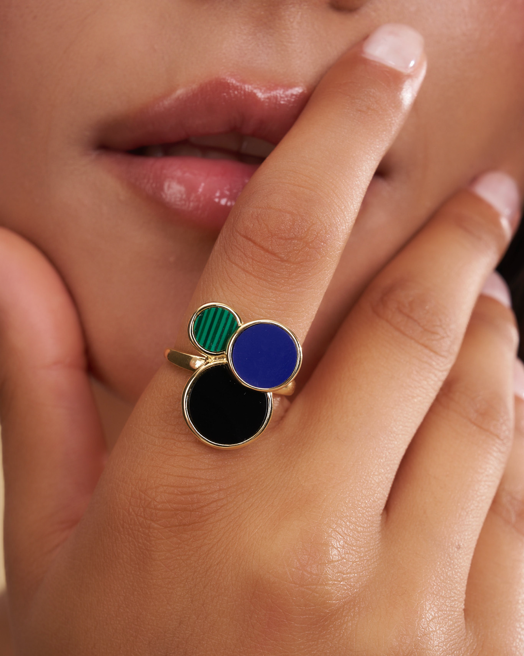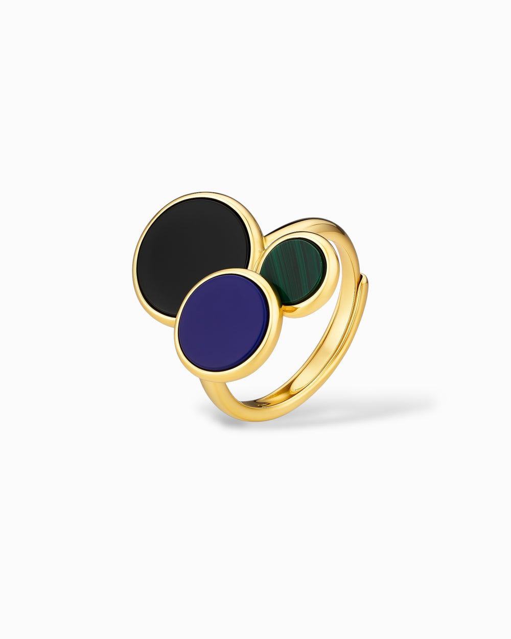 ANELLO DORATO CON ONICE, LAPIS E MALACHITE