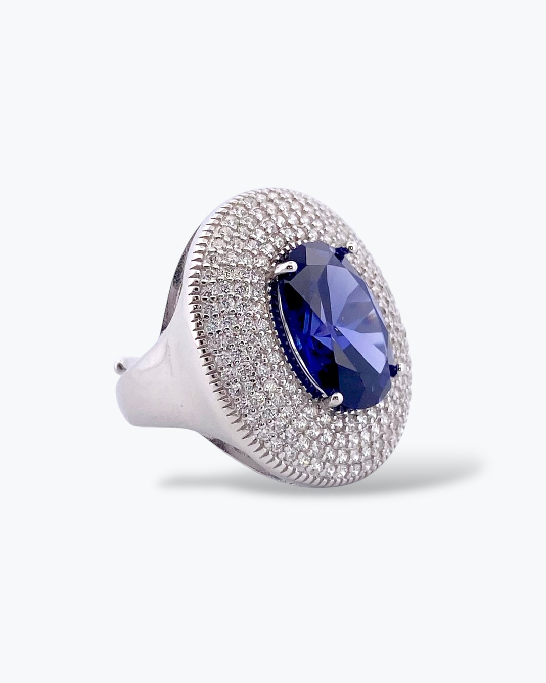ANELLO CON PIETRA OVALE CENTRALE E PAVE