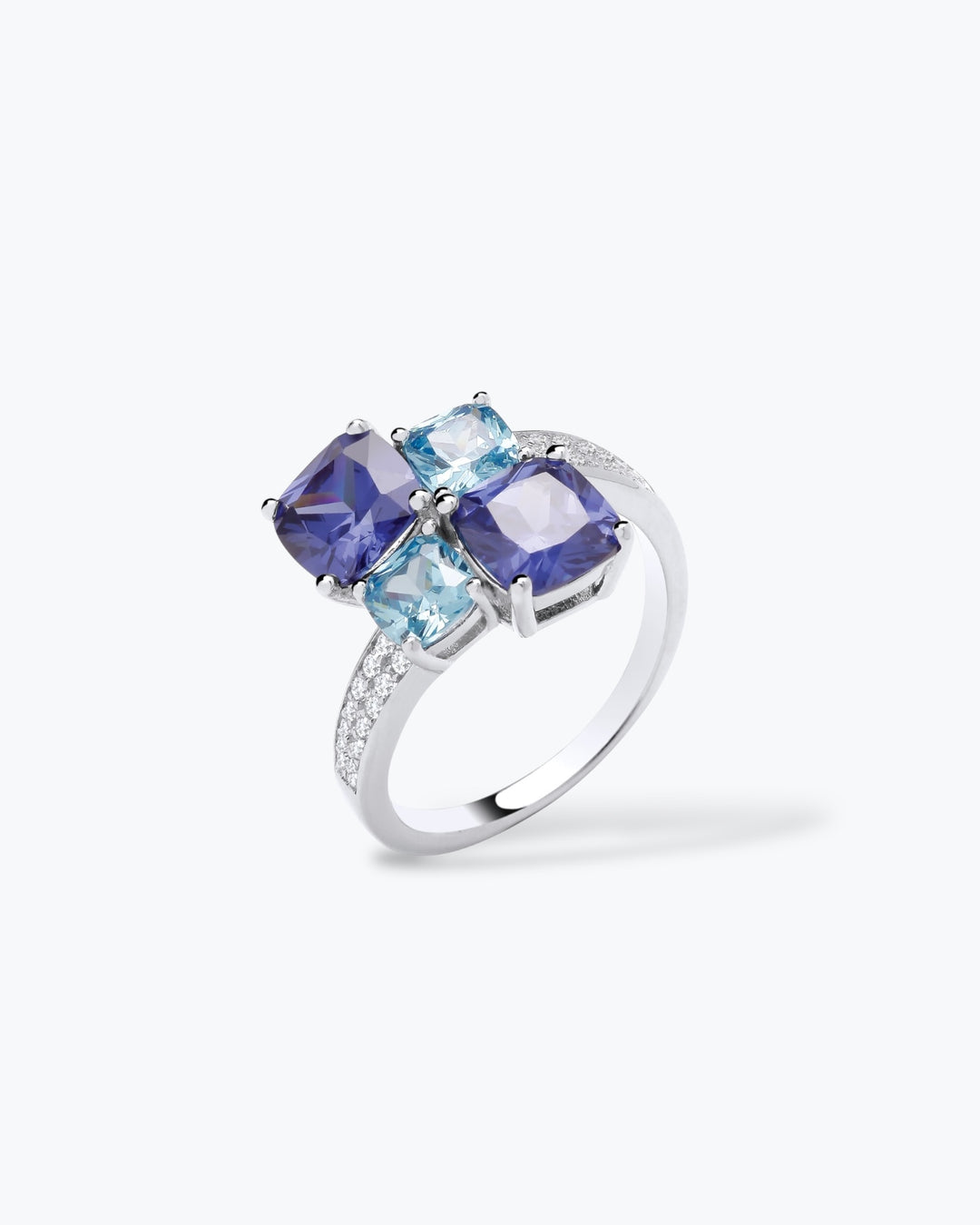 ANELLO CON TAGLIO A CUSCINO AQUAMARINA E TANZANITE