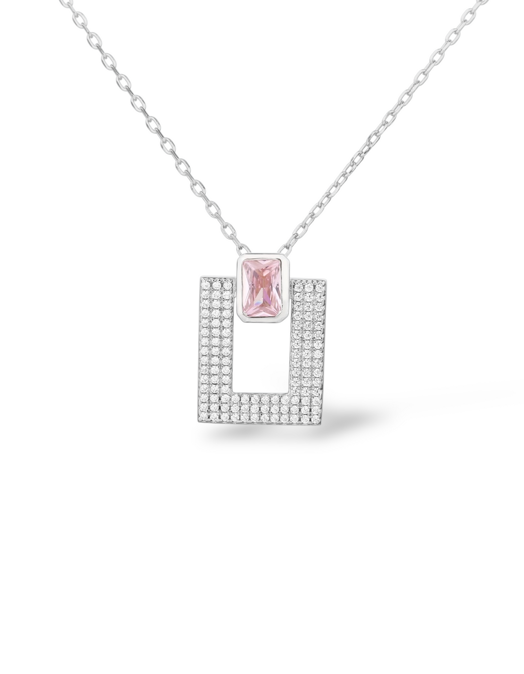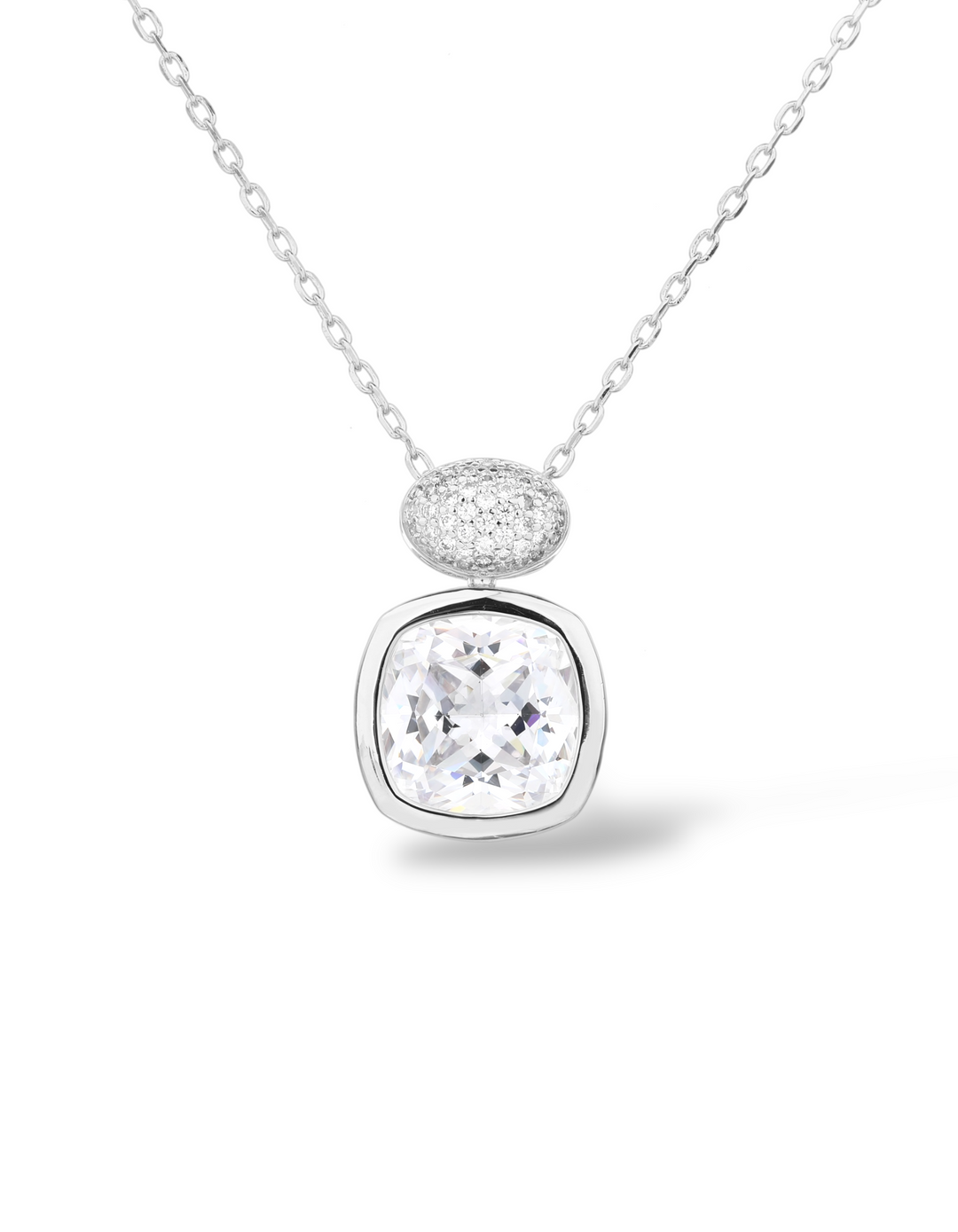 COLLANA CON PENDENTE ZIRCONE CUSHION E PAVÈ