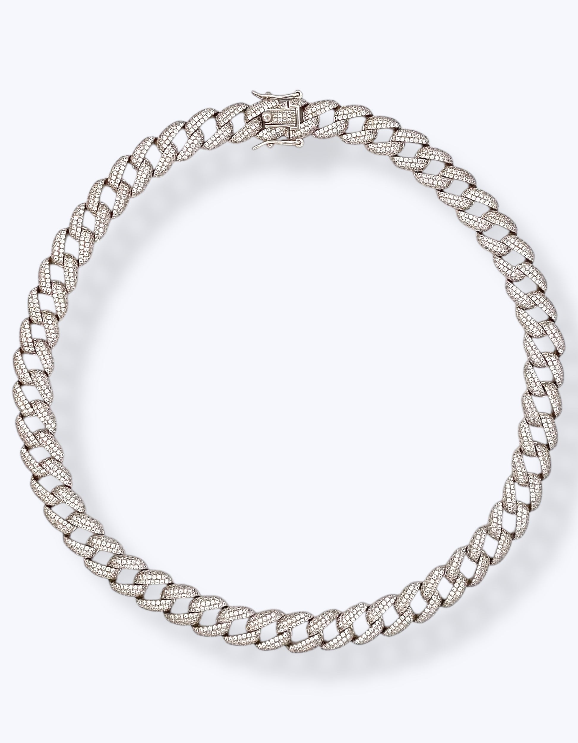 Le maglie oversize, dal design intrecciato e imponente, un pavé di cubic zirconia che catturano la luce in ogni movimento, regalando un effetto diamante mozzafiato.