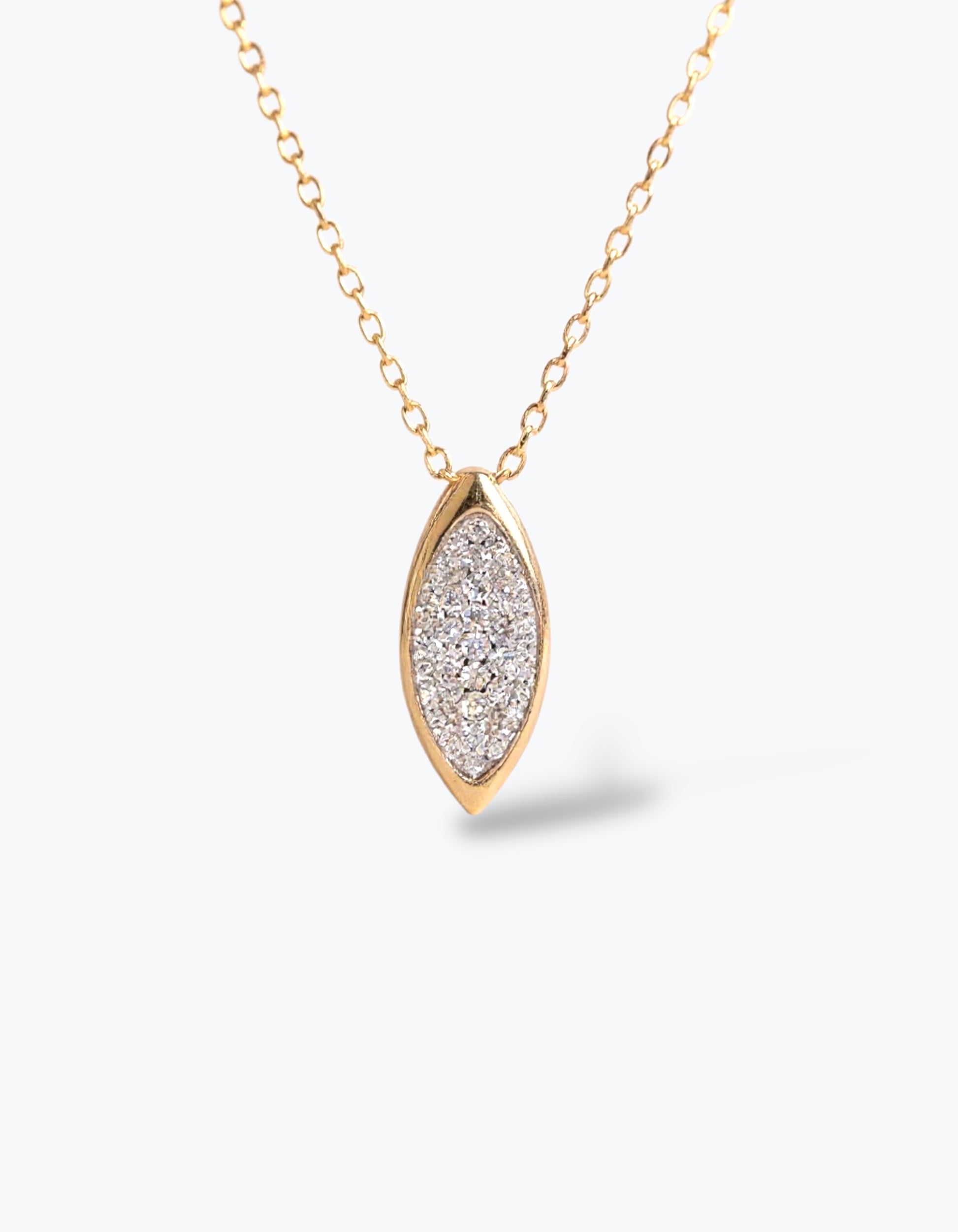 Questo raffinato ciondolo a forma di foglia, realizzato in argento 925 o nella versione placcata oro 18 carati, è impreziosito da luminosi cubic zirconia bianchi taglio marquise, che donano brillantezza e leggerezza a ogni dettaglio.